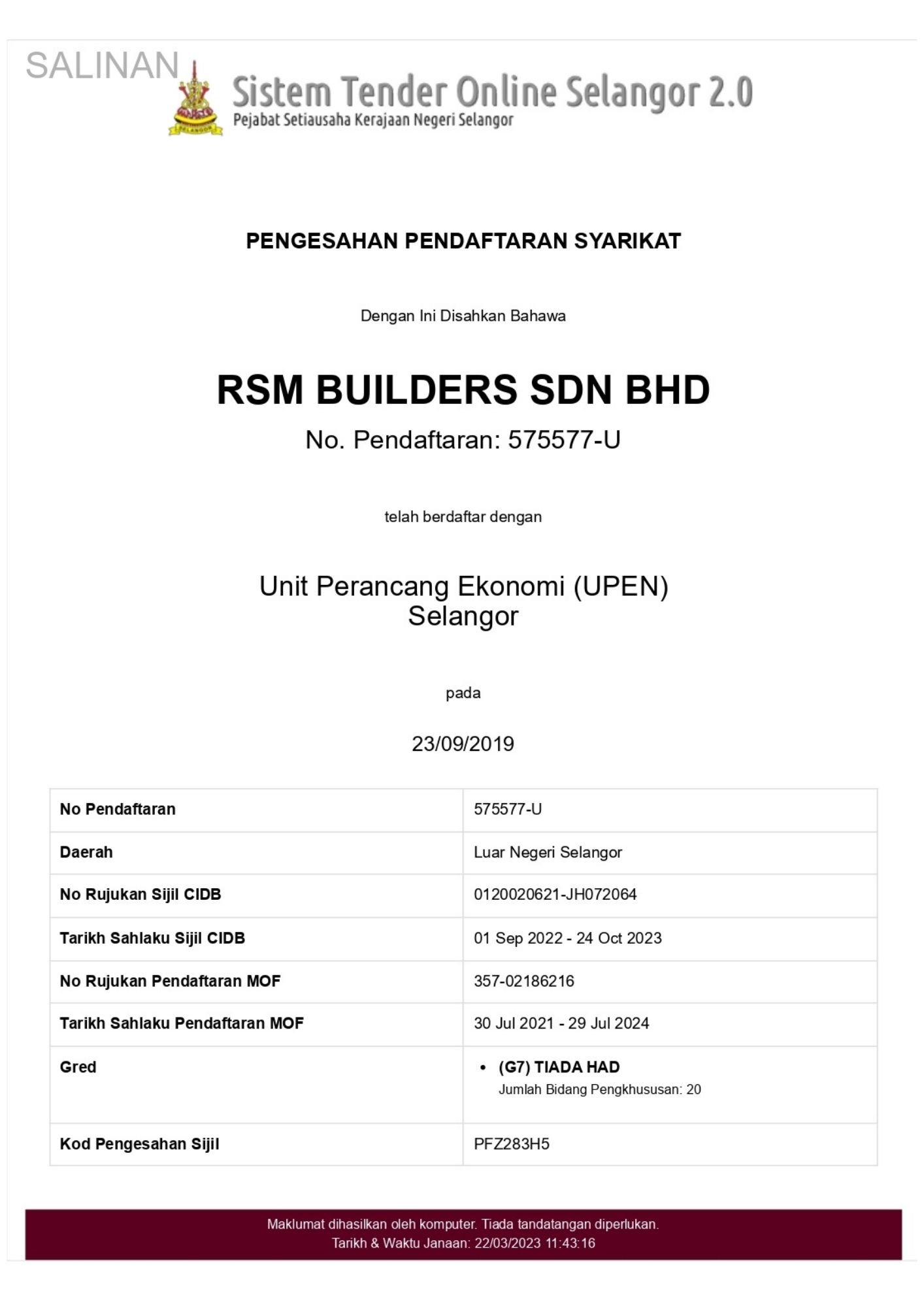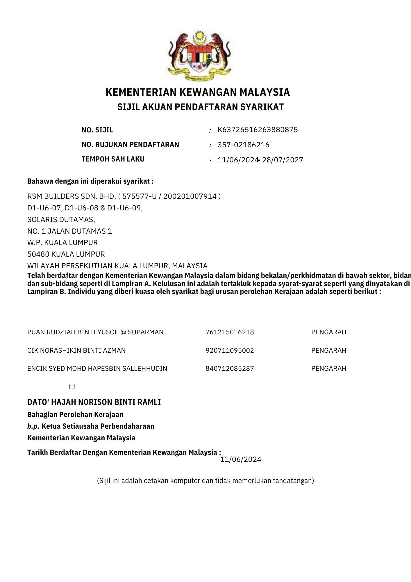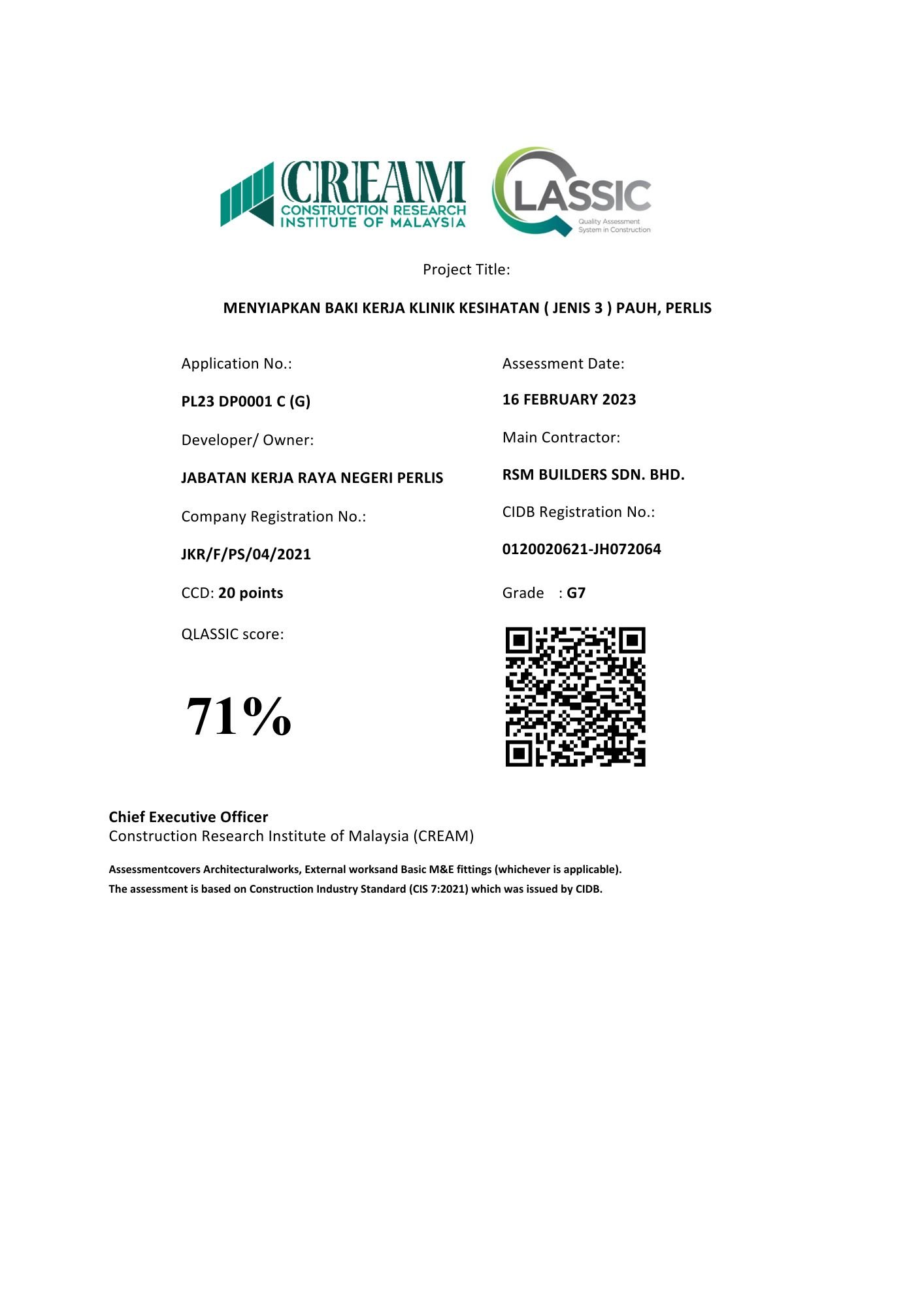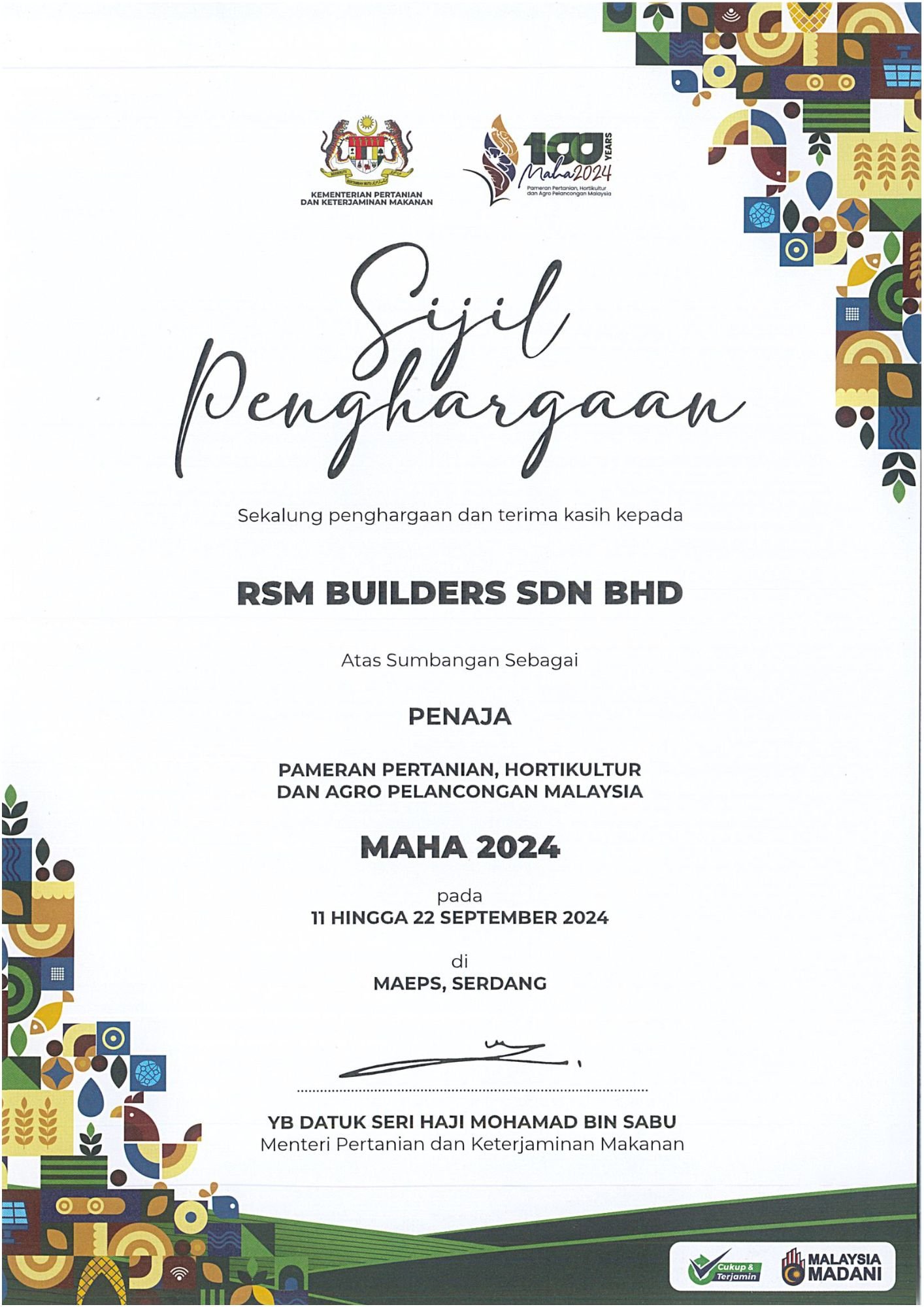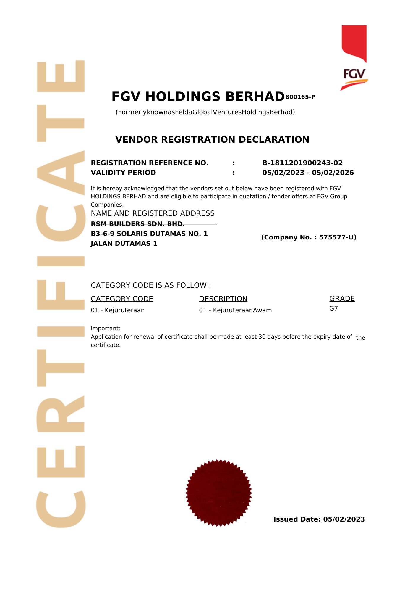 RSM Builders Sdn Bhd is a CIDB-registered contractor recognized for our professionalism and compliance with industry standards. Our company holds various licenses, vendor registrations, and certifications, enabling us to participate in high-value government and private projects. These recognitions serve as proof of our credibility, governance, and excellence in delivery. We continue to pursue certifications that strengthen our competitiveness and ensure that our projects meet local and international standards.