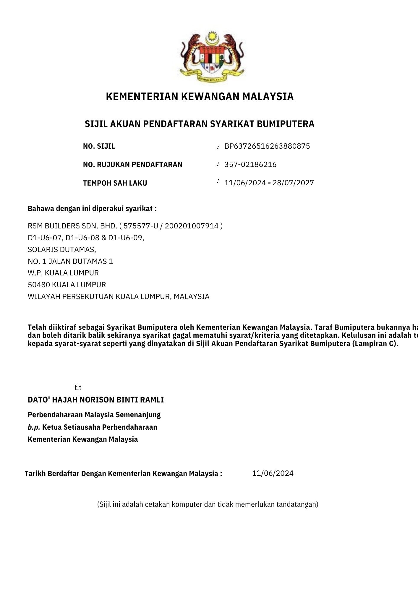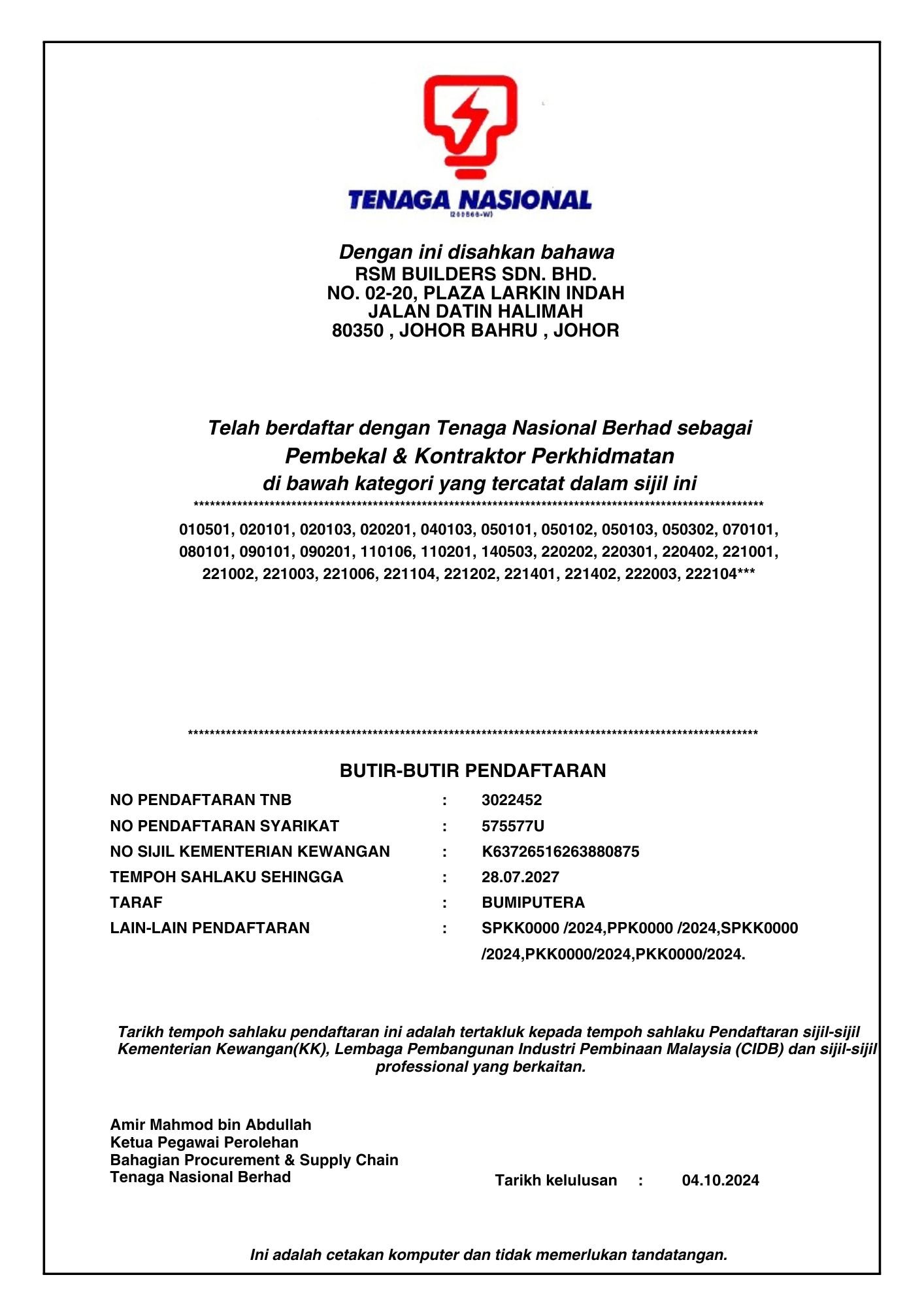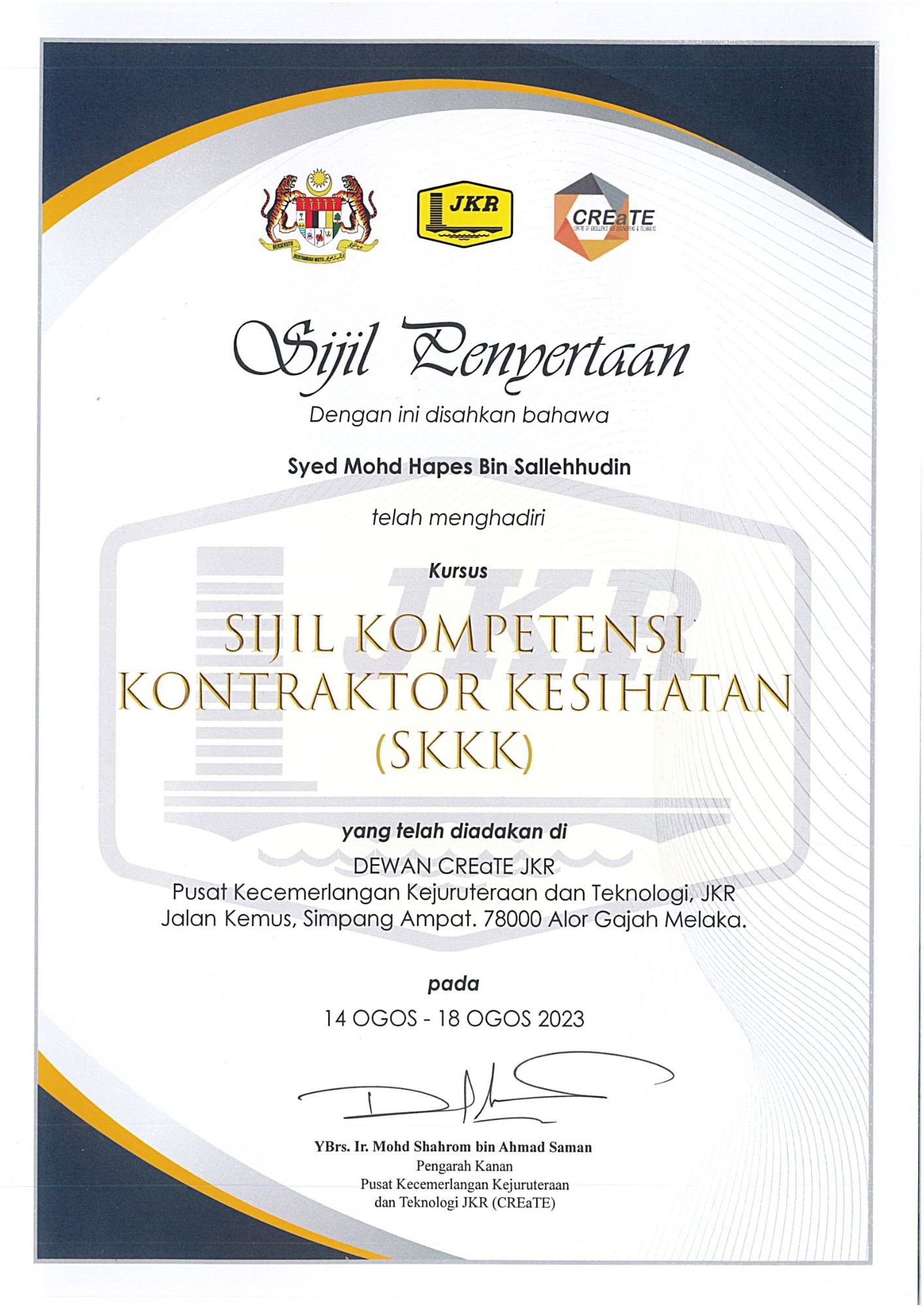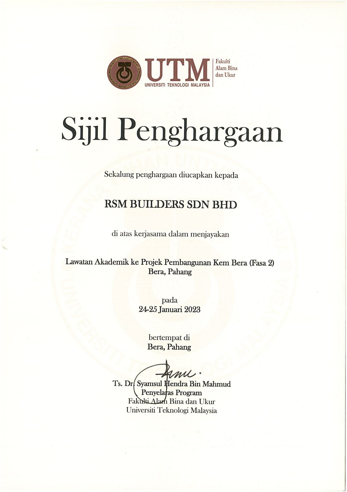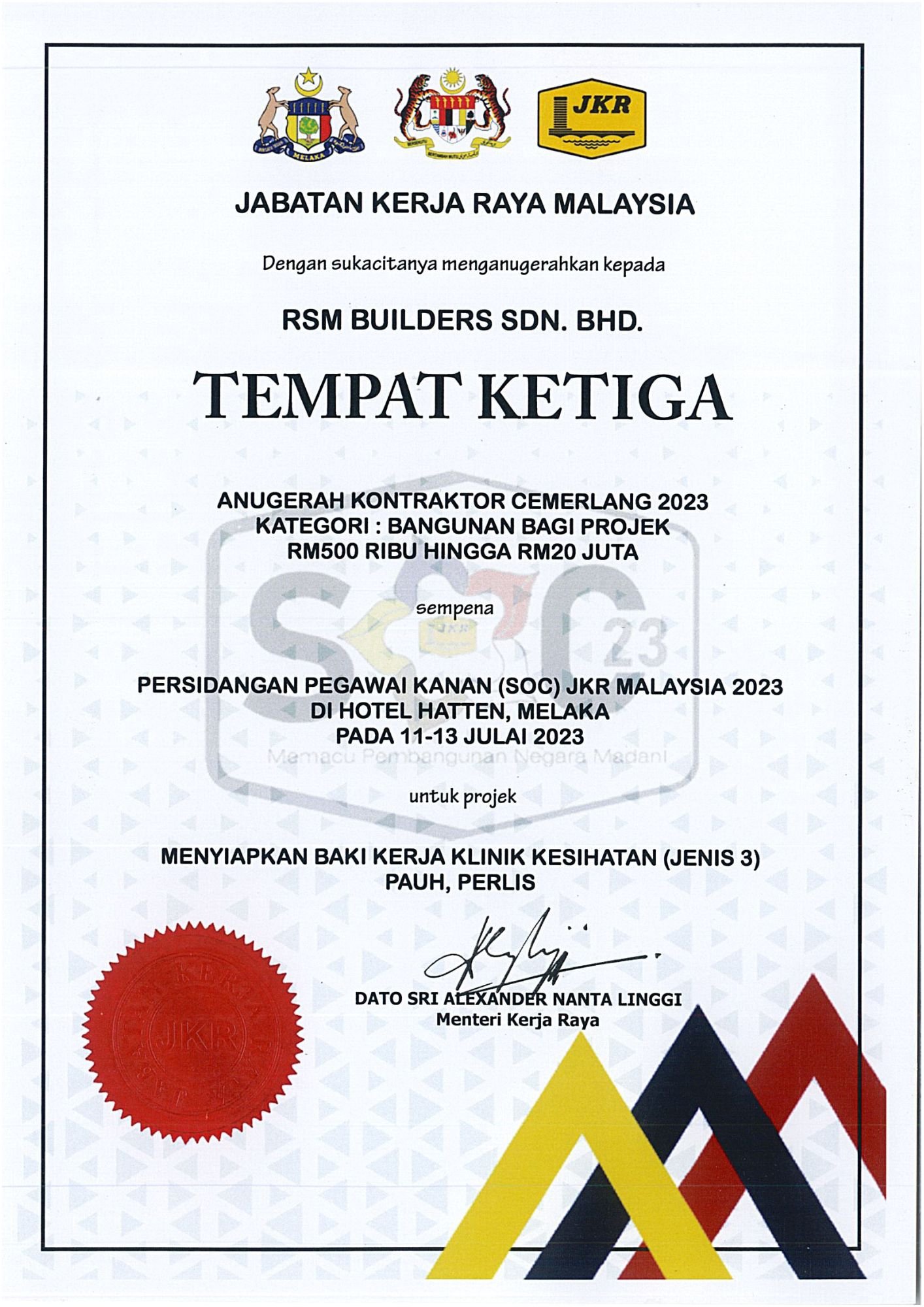 RSM Builders Sdn Bhd is a CIDB-registered contractor recognized for our professionalism and compliance with industry standards. Our company holds various licenses, vendor registrations, and certifications, enabling us to participate in high-value government and private projects. These recognitions serve as proof of our credibility, governance, and excellence in delivery. We continue to pursue certifications that strengthen our competitiveness and ensure that our projects meet local and international standards.